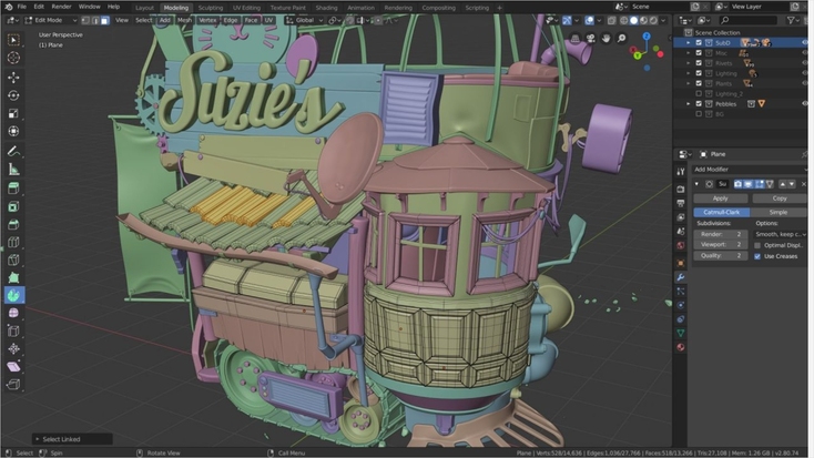 Blender是一款自带渲染引擎Cycles的开源软件。与SketchUp相比,Blender内置多种建模和渲染工具,这些工具对初学者来说颇具挑战性,但熟悉操作后,初学者也可轻松驾驭。Cycles渲染引擎可支持全域照明、光线追踪、计算柔和阴影和自然反射,还能够模拟焦散和次表面散射。此外,它还支持自适应采样和AI去噪,这些功能对于静态渲染与动画序列来说都极为出色。